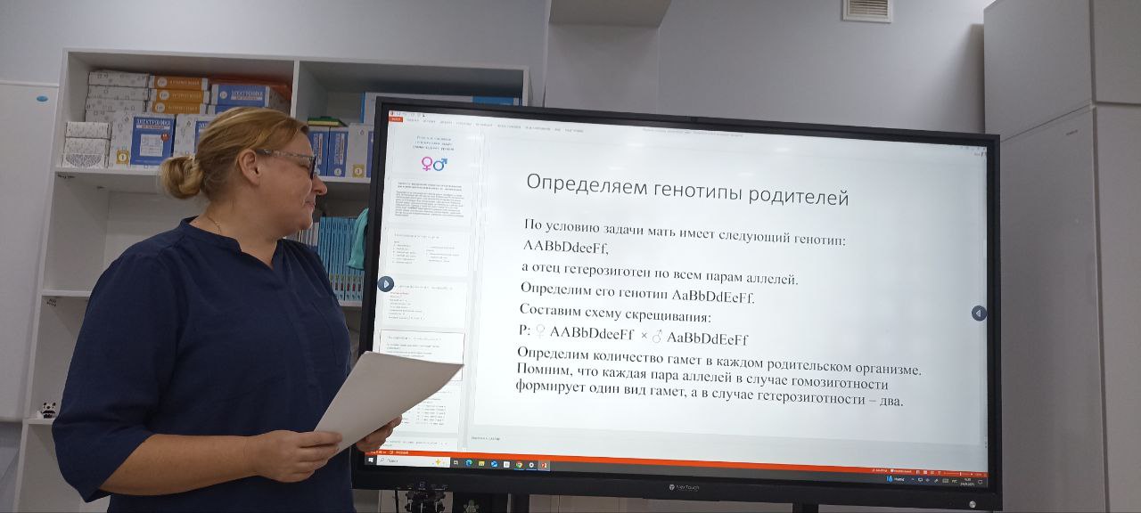 Педагог дополнительного образования ЦДО МАН Тарасова Н.И. провела с учителями биологии тренинг по решению задач ВсОШ по генетике.