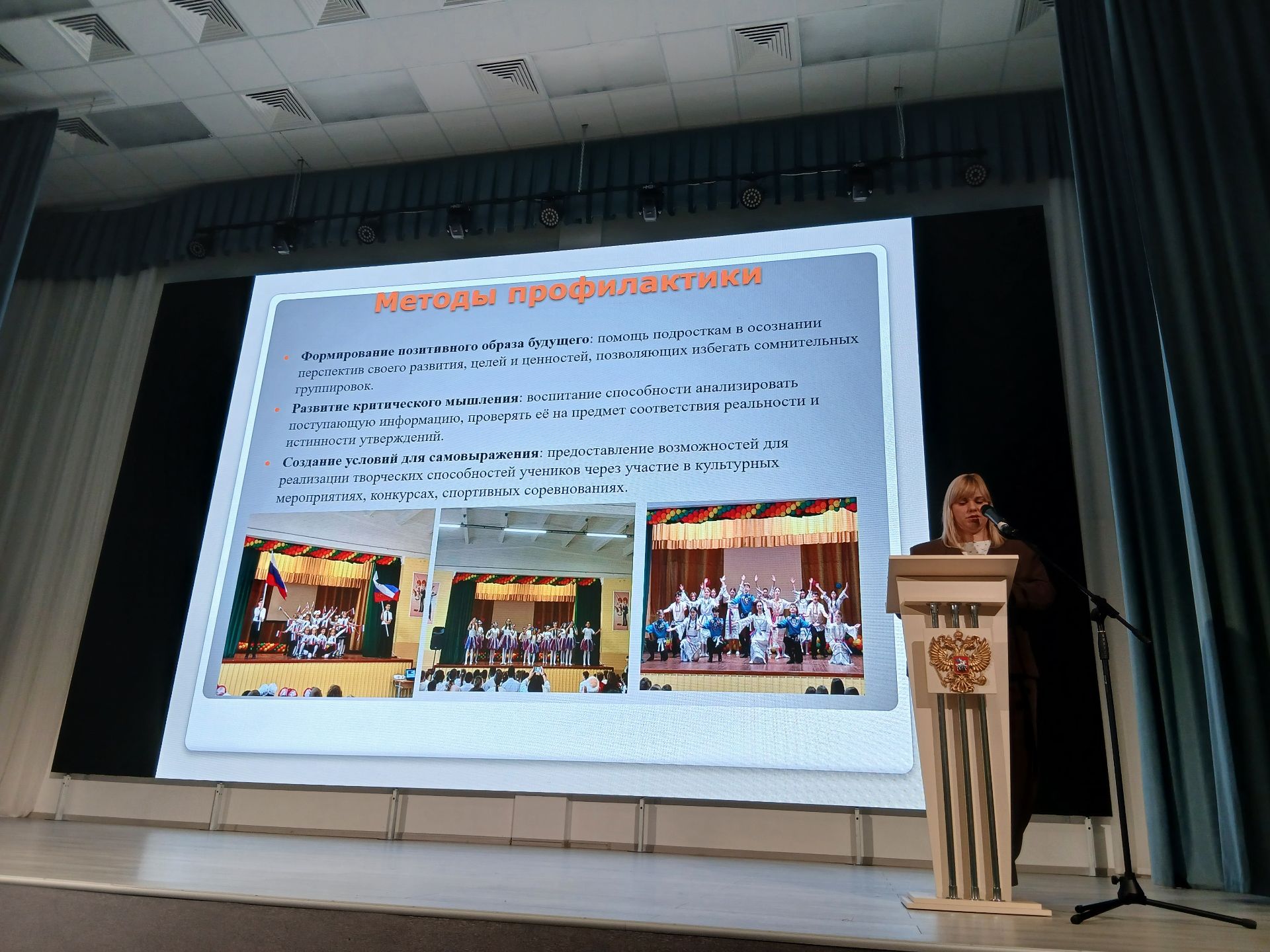 Педагог-психолог ГБОУ СОШ № 25 Шпаковская Ю.С. представила формы и методы работы специалистов психологической службы по профилактике деструктивного поведения обучающихся и противодействию идеологии терроризма, экстремизма в современной образовательной среде.